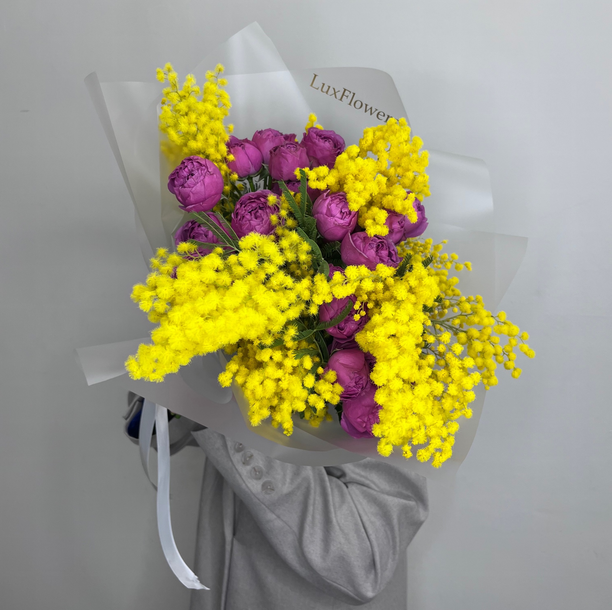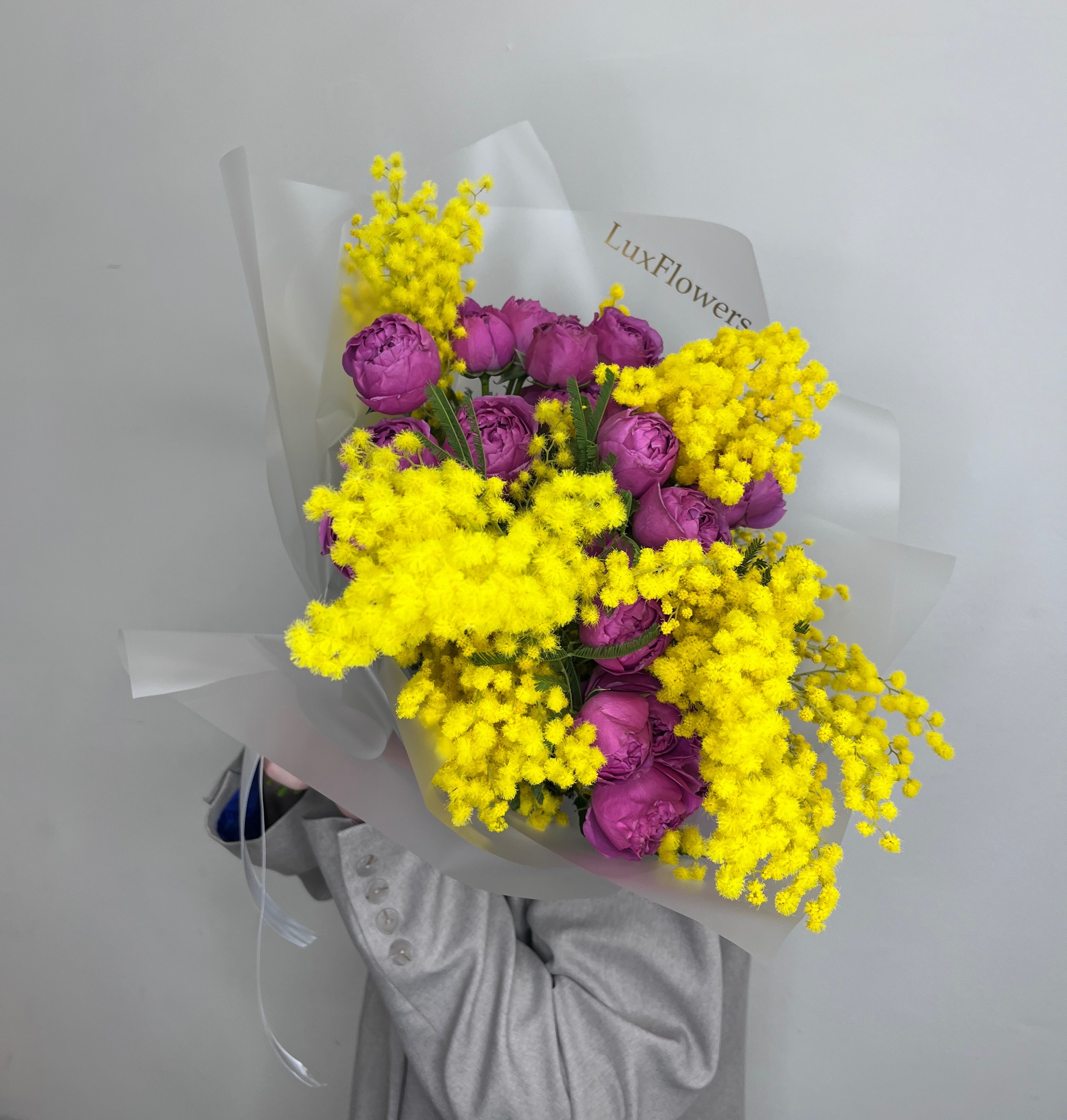 Мимоза и пионовидные розы